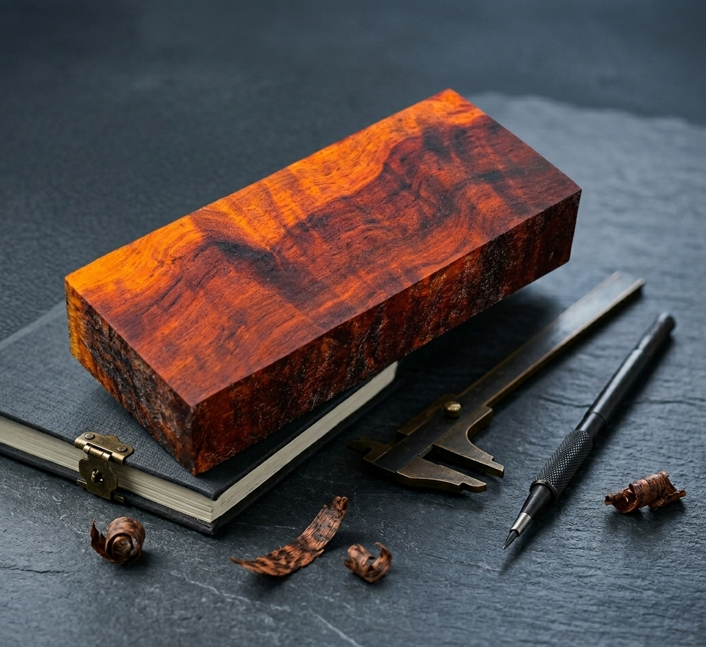 Padauk Ağacı 5x10x2 cm Plaka Tesbih Hammaddesi – Kırmızı-Turuncu Egzotik Ahşap Tesbih Malzemesi
