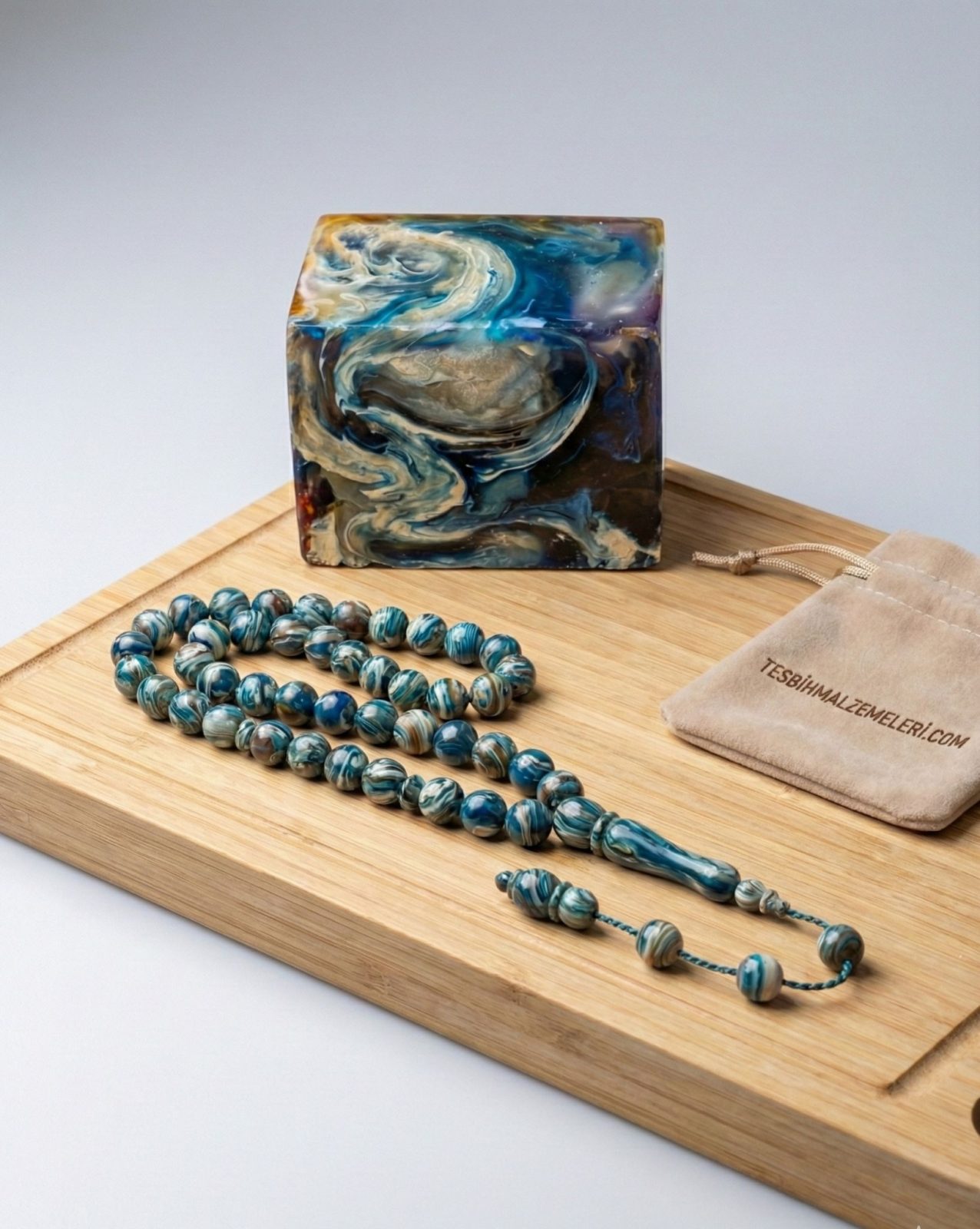Su Şeffafı Mavi Beyaz Damarlı Tesbih Hammadde Kalıbı